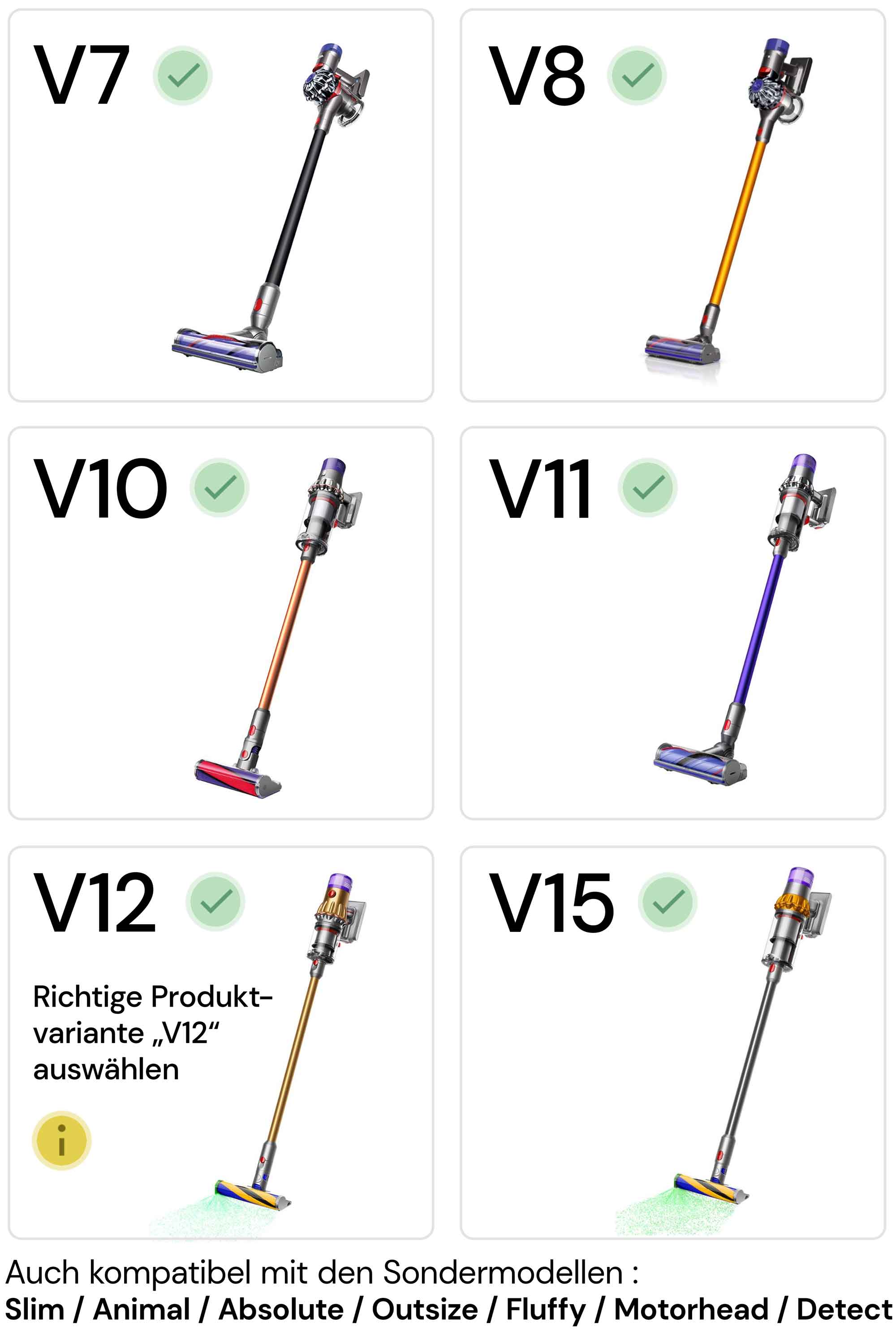 Our mop attachment is compatible with Dyson V7 V8 V10 V11 / V12 and V15 Animal/ Absolute/ Outsize/ Fluffy/ Motorhead/ Detect.